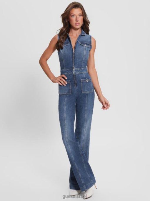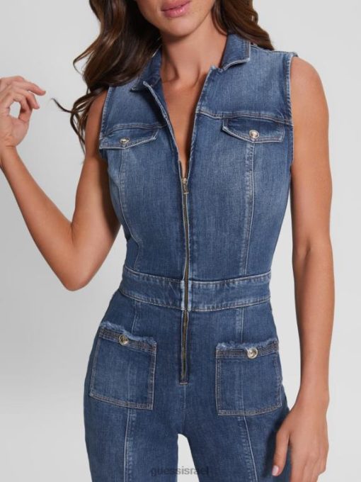 GUESS נשים סרבל ג’ינס אקו פניני F8RV125 לבוש השכלה חשוכה