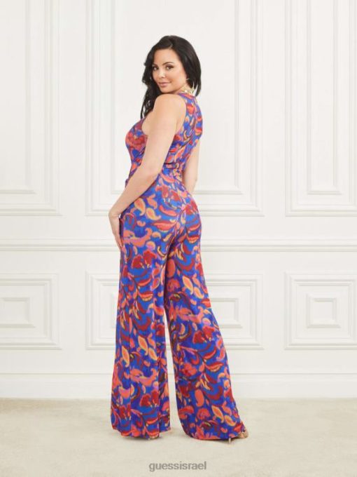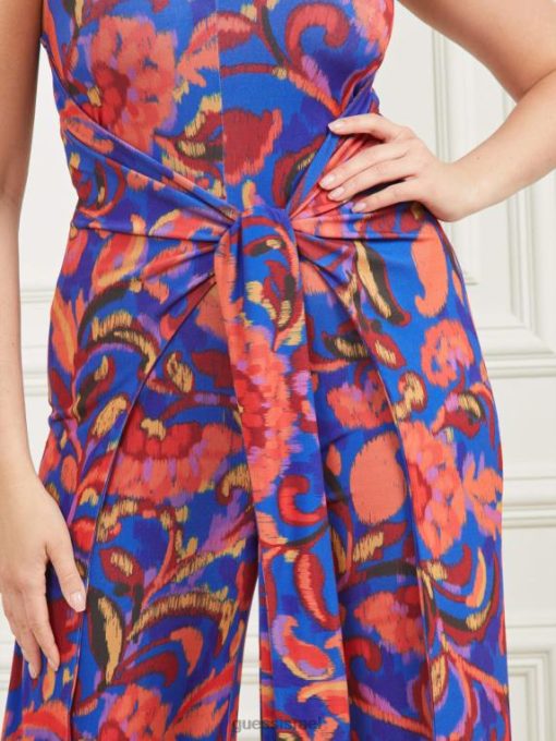 GUESS נשים סרבל ללא שרוולים של calla F8RV432 לבוש הדפס כחול בטי