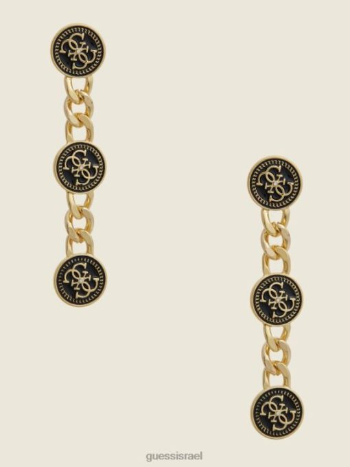 - עגילים בגוון זהב המורכבים מטיפות שרשרת ליניאריות עם פרטי כפתור לוגו quattro g