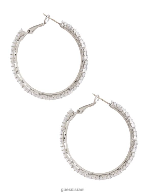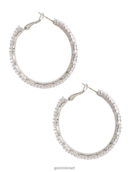 GUESS נשים עגיל חישוק קריסטל גדול בציפוי רודיום F8RV3931 אבזר כסף/זהב