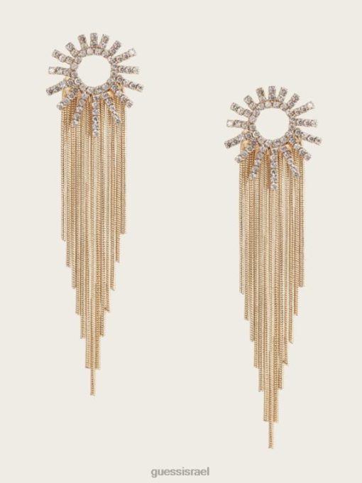 - עגיל טיפה זהב בגוון זהב כולל חלק עליון יהלומים מלאכותיים עם פריטי שוליים נופלים למטה.
