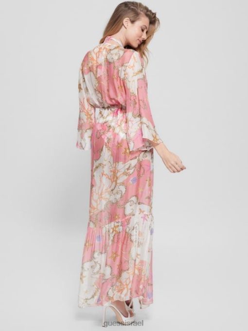 GUESS נשים קימונו ארוך בתערובת משי F8RV2562 לבוש ים וקונכייה בכל רחבי פי
