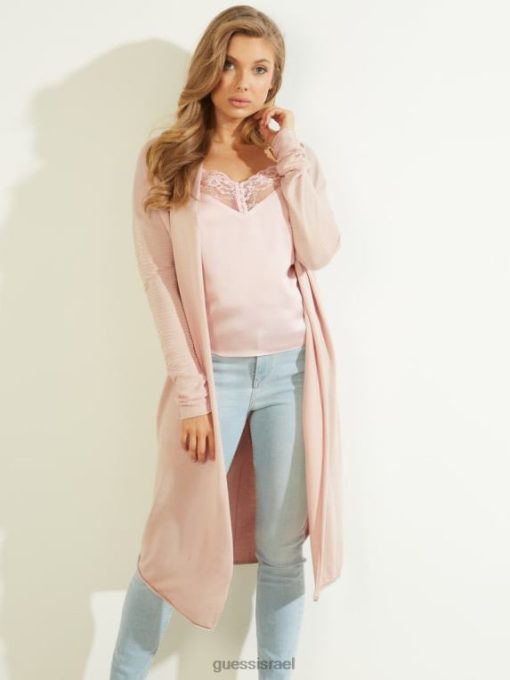 GUESS נשים קרדיגן קמיל עם חזית פתוחה F8RV966 לבוש בובה ורוד