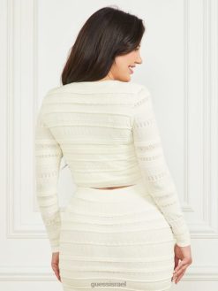 GUESS נשים קרדיגן קצוץ לפלרטט F8RV1013 לבוש פנינה חיוורת