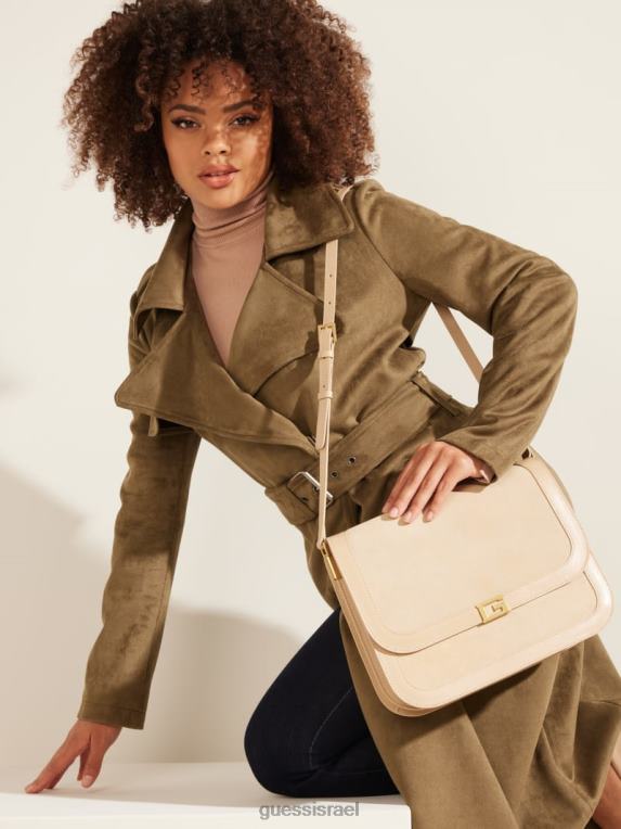 GUESS נשים קרוסגוף עור עם דש בינוני F8RV2898 תיקים הצפה בז’