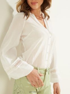 GUESS נשים ריאן וואל העליון F8RV1656 לבוש לבן טהור