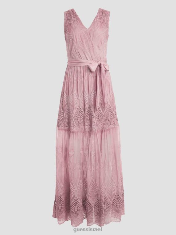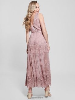 GUESS נשים שמלה ארוכה רקומה של פאם F8RV570 לבוש סומק וינטג’ מולטי