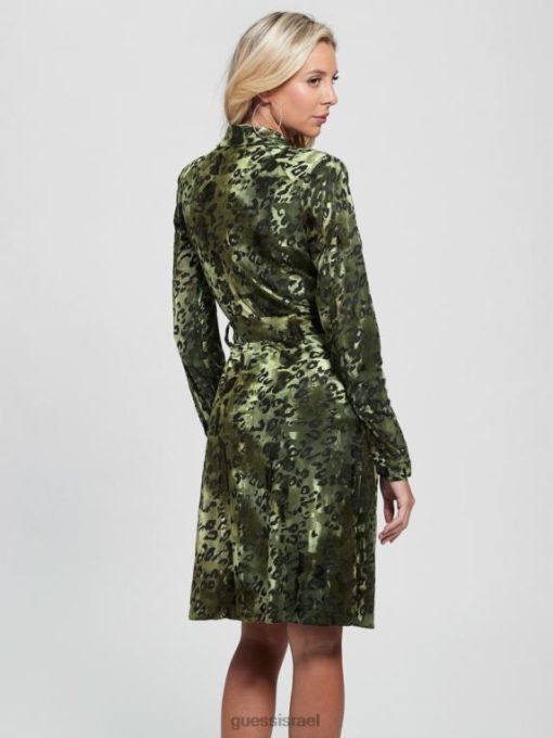 GUESS נשים שמלת אבוני F8RV876 לבוש שחיקה קטיפה צבאית g