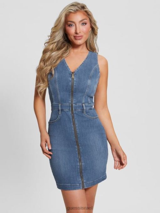 GUESS נשים שמלת ג’ינס אקולוגית מיקול F8RV11 לבוש שמי נוצה
