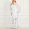 GUESS נשים שמלת חולצה ארוגה באלי F8RV474 לבוש בלאן פור