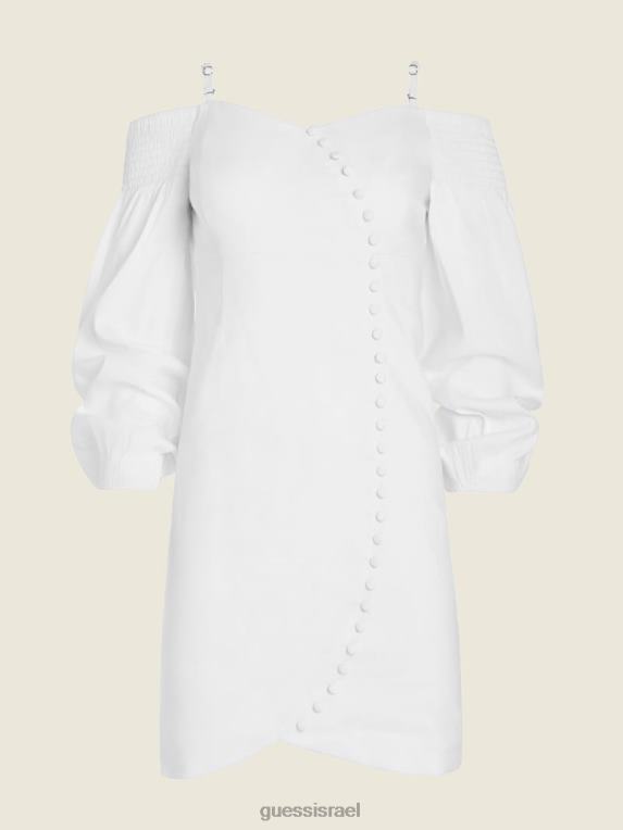 GUESS נשים שמלת כתף קרה עם שחר F8RV840 לבוש לבן טהור