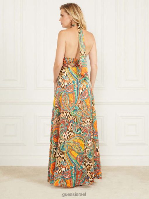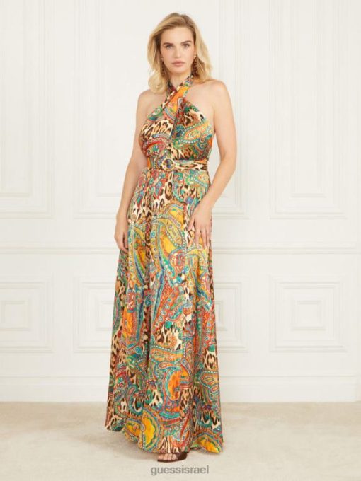 GUESS נשים שמלת מקסי מודפסת של פניקס עולה F8RV728 לבוש הדפס עוף החול