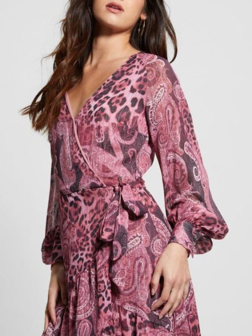 GUESS נשים שמלת מקסי מעטפת אקולוגית nuovo bahia F8RV326 לבוש הדפס קשמיר סגול