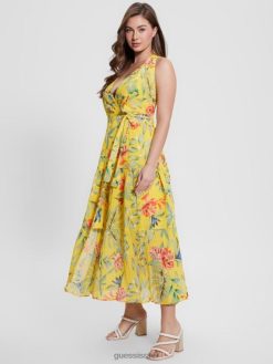 GUESS נשים שמלת מקסי מעטפת אקו מארה F8RV458 לבוש הדפס טרופי של שעת הזהב