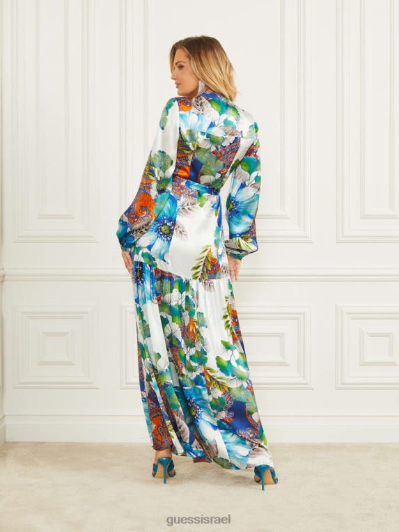 GUESS נשים שמלת מקסי משי של Lucky Charm F8RV426 לבוש הדפס קסמי מזל