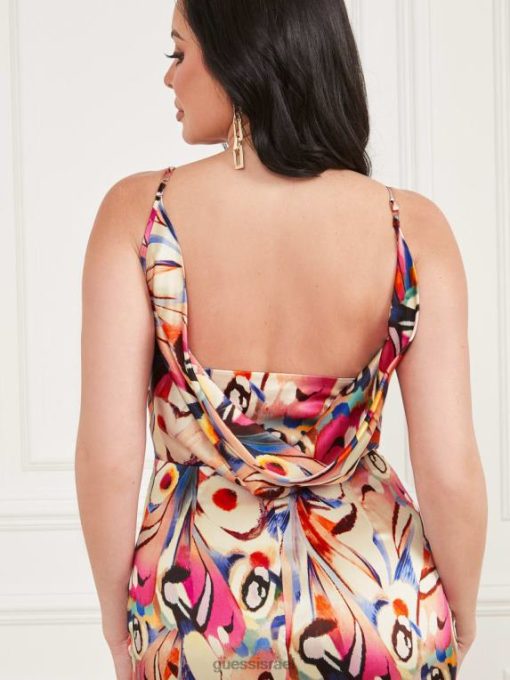 GUESS נשים שמלת מקסי משי של madelyn F8RV515 לבוש הדפס ארץ הפלאות