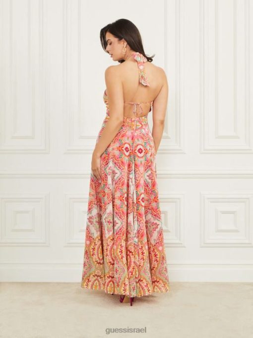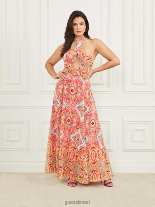 GUESS נשים שמלת מקסי נורמני F8RV504 לבוש הדפס אריחי talitha