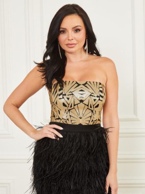 GUESS נשים שמלת נוצות ברונווין F8RV621 לבוש שָׁחוֹר