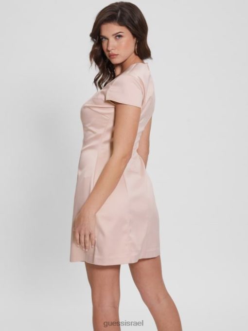 GUESS נשים שמלת סאטן של לונה גוף אייקון F8RV298 לבוש בובה ורוד