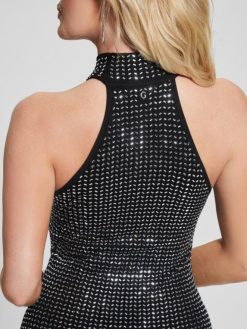 GUESS נשים שמלת סוודר במראה סלסט F8RV479 לבוש שָׁחוֹר