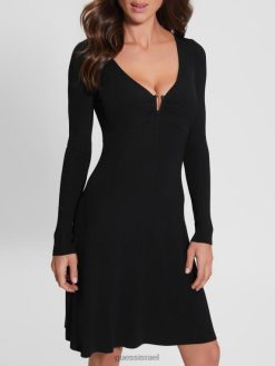 GUESS נשים שמלת סוודר מידי אוליביה F8RV646 לבוש שָׁחוֹר