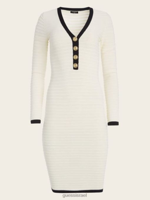 GUESS נשים שמלת סוודר עם פסים מובלטת של אלבה F8RV574 לבוש חוף חולי/שחור