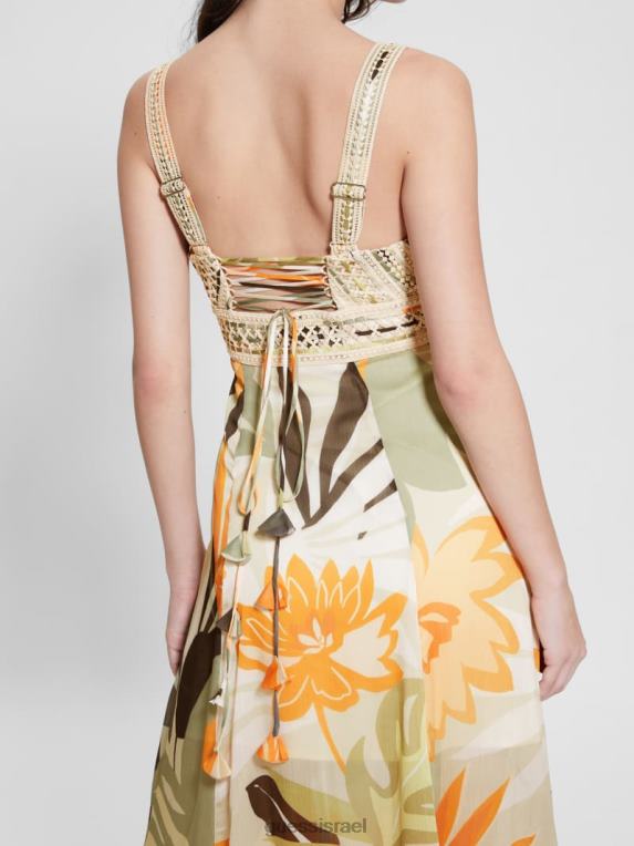 GUESS נשים שמלת סרינה אקולוגית F8RV415 לבוש הדפסת טופס עלווה