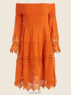GUESS נשים שמלת ענבר מחוץ לכתף F8RV729 לבוש multi blaze gold