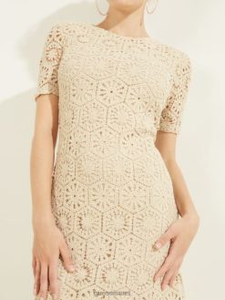 GUESS נשים שמלת קרושה של שרלוט F8RV912 לבוש מולטי אוף לבן