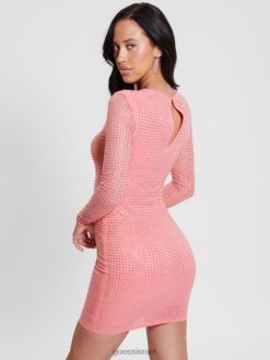 GUESS נשים שמלת קריסטל של אסטל F8RV296 לבוש שפתון ורוד