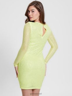 GUESS נשים שמלת קריסטל של אסטל F8RV411 לבוש קיווי מאובק