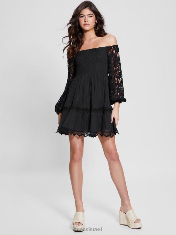 GUESS נשים שמלת קתרינה אקולוגית מחוץ לכתף F8RV333 לבוש שָׁחוֹר