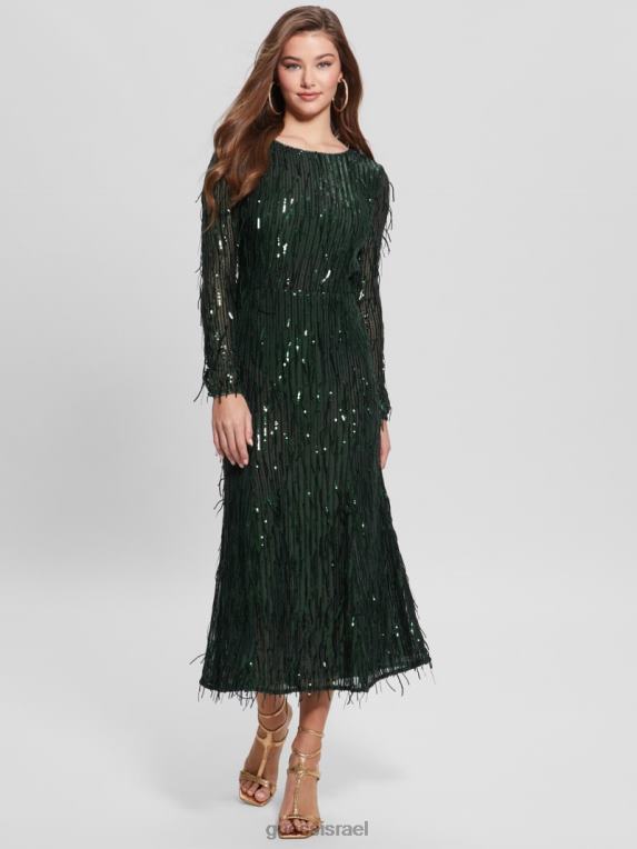 GUESS נשים שמלת שוליים נצנצים של elodie F8RV688 לבוש טחב מחצלת מולטי