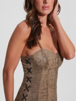 GUESS נשים שמלת rio F8RV567 לבוש נחש חום