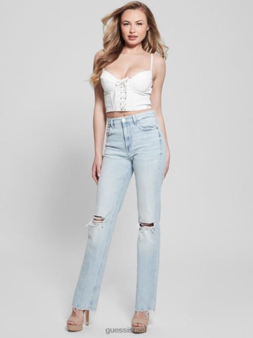 GUESS נשים שנות ה-80 הרסו ג’ינס ישר בגובה רב F8RV23 לבוש השקט להרוס