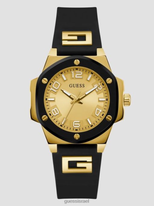 GUESS נשים שעון סיליקון אנלוגי F8RV3561 אבזר בגוון זהב ושחור