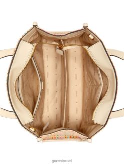 GUESS נשים תיק קש צבעוני של סילבנה F8RV2950 תיקים מולטי לבן