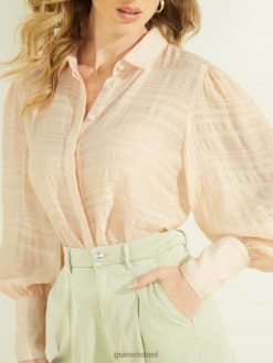 GUESS נשים rav crinkle העליון F8RV1645 לבוש קרם קקאו מולטי